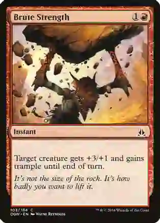 Target creature gets +3/+1 and gains trample until end of turn. Rarity: C #: 103 Card Type: Instant Flavor: It’s not the size of the rock. It’s how badly you want to lift it. Artist: Wayne Reynolds