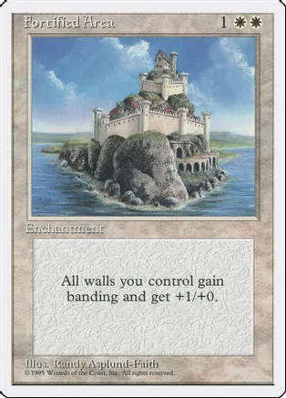 All walls you control gain banding and get +1/+0. Rarity: C Card Type: Enchantment Artist: Randy Asplund