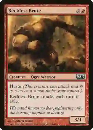 Haste Reckless Brute attacks each turn if able. Rarity: C #: 144 Card Type: Creature Ogre Warrior P / T: 3 / 1 Flavor: His mind knows no fear, registering only the burning impluse to destroy. Artist: Johann Bodin
