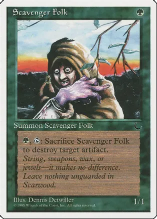 G, T: Sacrifice Scavenger Folk to destroy target artifact. Rarity: C Card Type: Creature Scavenger Folk P / T: 1 / 1 Artist: Dennis Detwiller
