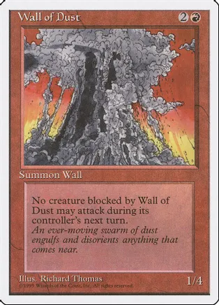 No creature blocked by Wall of Dust may attack during its controller’s next turn. Rarity: U Card Type :Creature Wall P / T: 1 / 4 Artist: Richard Thomas